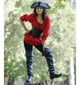 This traditional chemisette will be the most practical item of your costume collection. It comes with the traditional drawstring neckline and ruffled cuffs. The sleeves are three-quarter in length. This top is made of cotton. Customer Comment: I have already worn this stylish top twice. Once as a pirate and the other time under my Celtic gown.