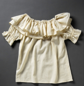 Pullover peasant top with elastic neck and cap sleeves. Available in White and Off-White in sizes Medium-XL